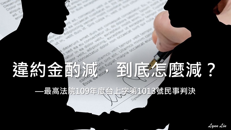近期最高法院109年度台上字第1013號民事判決,就違約金酌減標準,依照違約金屬於「賠償總額預定性質」或是「懲罰性質」,做出細緻的分析,殊值參考。